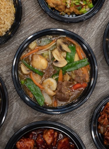 Shredded carrots, avocado, corn, teriyaki chicken and sesame dressing